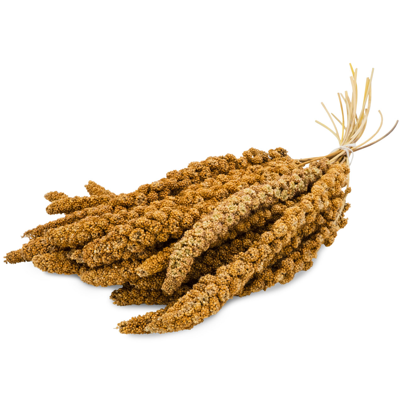 Žluté proso nejvyšší kvality. Zdravé potěšení ze sběru a aktivita odpovídající druhu jako ve volné přírodě. Krmná surovina pro všechny exotické ptáky Analytické složky: hr.protein 10.2%, hr.tuk 4.5%, hr.vláknina 9.7%, hr.popel 3%, vápník 800 mg/kg, fosfor 2500 mg/kg, sodík 100 mg/kg Krmné doporučení: Podávejte jako pamlsek Sušené a chutné proso žlutého je vítanou změnou v ptačím domově a lze je zavěsit kamkoli. Ptáci rádi vybírají jednotlivá zrna ze svazku a jsou zaměstnáni přirozeným a smysluplným způsobem.