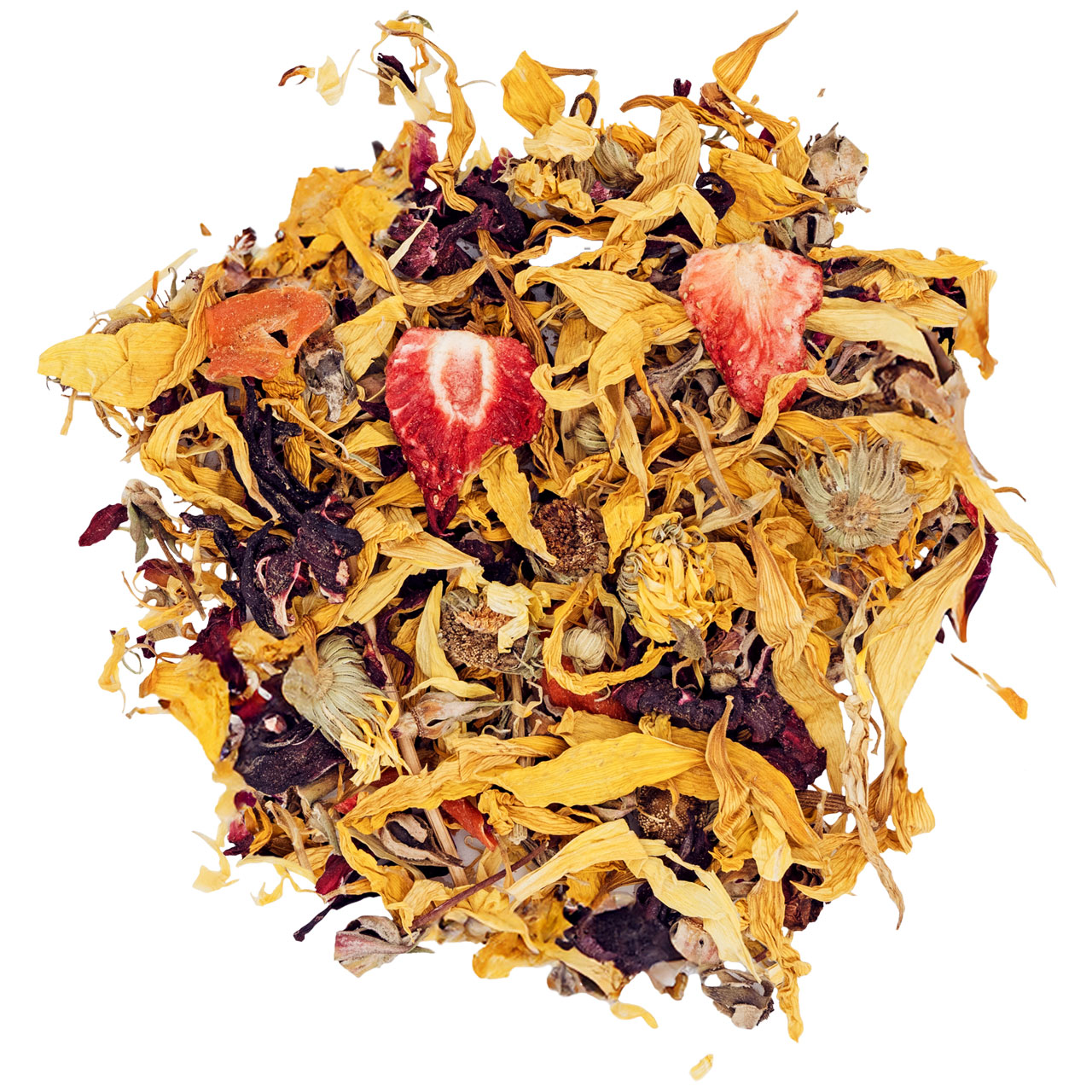 Barevná směs nádherných okvětních lístků zavede malá zvířata do květinového ráje! Doplňkové krmivo pro zakrslé králíky a hlodavce Složení: květy růže 32%, květy měsíčku 30%, květy ibišku, mrkev, okvětní lístky slunečnice, jahody. Analytické složky: hr.protein 10.1%, hr.tuk 3.5%, hr.vláknina 11.9%, hr.popel 9.7%, vápník 8670 mg/kg, fosfor 2380 mg/kg, sodík 2160 mg/kg Krmné doporučení: Podávejte jako pamlsek Nechte své malé kožešinové kamarády ponořit se do barevného světa této nádherně voňavé směsi květů a dopřejte jim opravdovou hostinu smyslů. Relaxační květy růže, uklidňující a protizánětlivé měsíčky, stejně jako květy ibišku bohaté na vitamín C a imunizující květy slunečnice, které ulevují od kašle. Květinový ráj je zušlechtěn betakarotenem a mrkví s obsahem vlákniny a ovocnými jahodami bohatými na životně důležité látky.