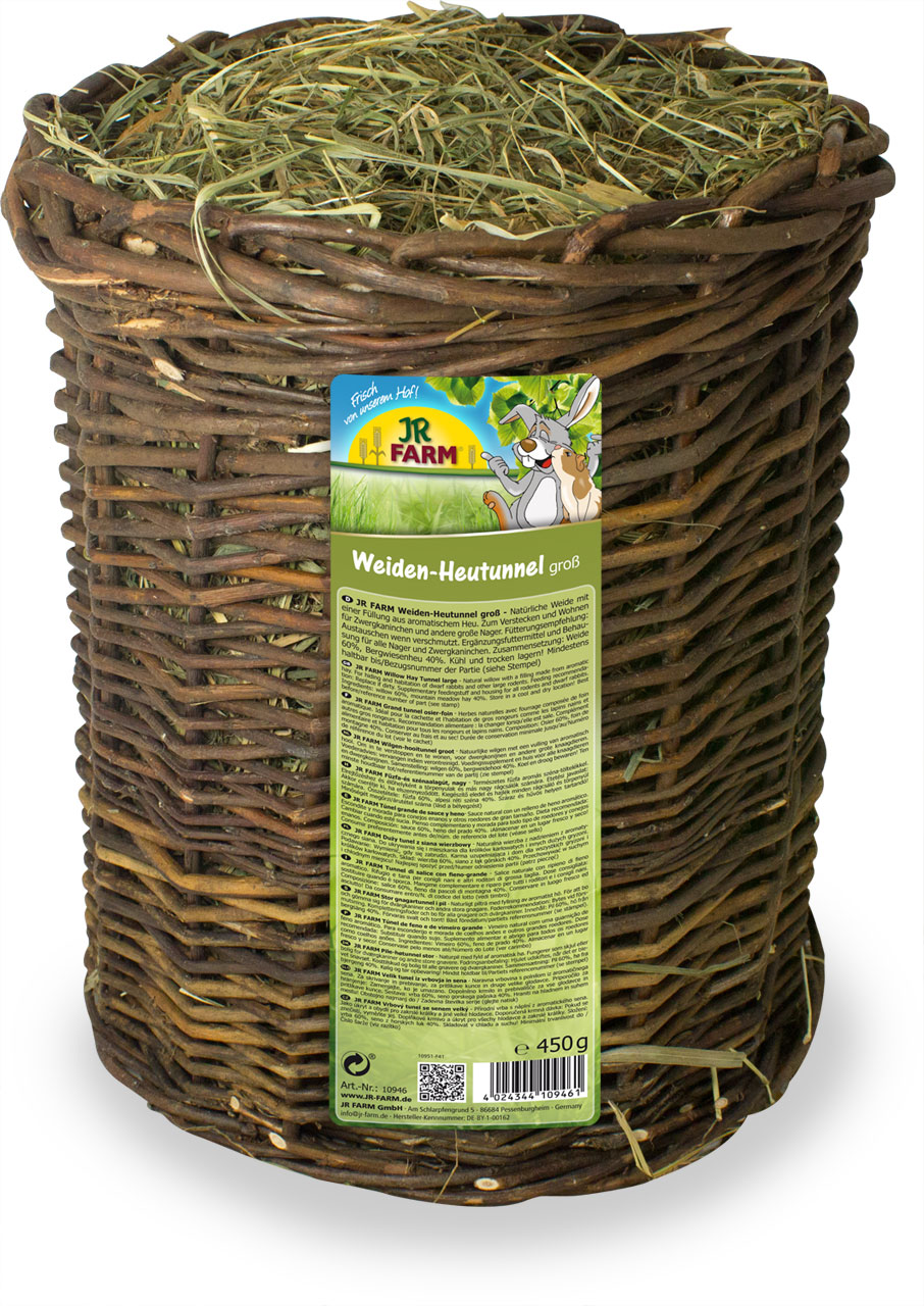 Vyrobeno z přírodní vrby po okraj naplněno voňavým senem z horských luk z původních přírodních luk v srdci Bavorska. Doplňkové krmivo a obydlí pro všechny hlodavce a zakrslé králíky Rozměry: Tunel je přibližně 29 cm dlouhý a má průměr 22 cm Složení: vrba 60%, seno z horské louky 40% Analytické složky: hr.protein 10.5%, hr.tuk 3.3%, hr.vláknina 35.5%, hr.popel 4.4%, vápník 5479 mg/kg, fosfor 1973 mg/kg, sodík 371 mg/kg Krmné doporučení: Při zašpinění vyměňte Seno z různých trav a bylin tvoří druhově vhodný nutriční základ pro malá zvířata a zakrslé králíky a dodává jim důležitou surovou vlákninu. Podporuje fyziologické opotřebení zubů při hlodání a podporuje udržení stabilní střevní flóry.