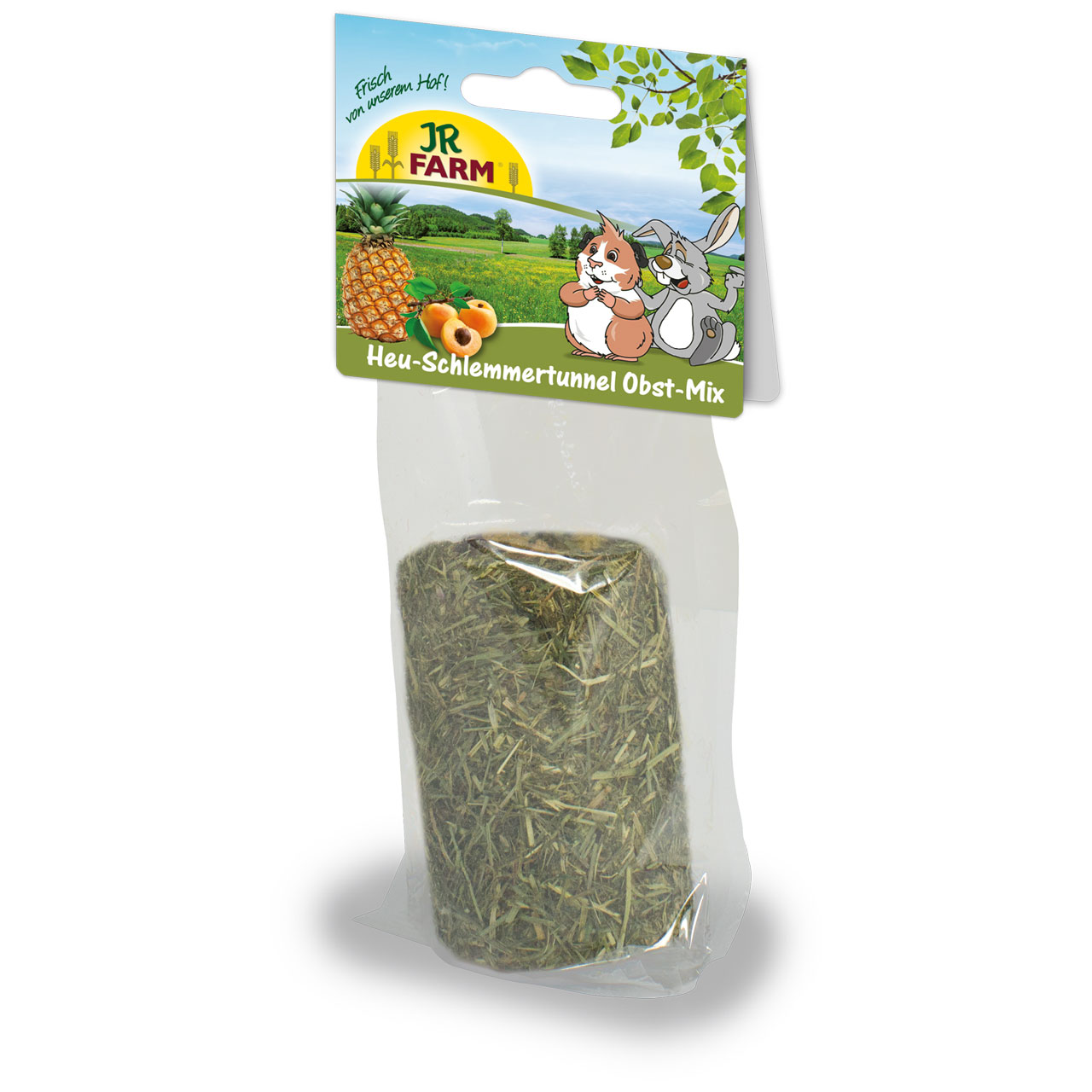 Gurmánský tunel, stoprocentně přírodní. Pokrytý voňavým, na surovou vlákninu bohatým senem z horských luk a plněný chutným ovocem. Doplňkové krmivo a obydlí pro všechny hlodavce a zakrslé králíky Složení: lignocelulóza, extrudovaná kukuřičná mouka, seno z horské louky 12%, banány 6.4 %, karob, kukuřičné vločky, ananas 3.1%, kokosový olej, rostlinný škrob, meruňky 2%, červená řepa, vojtěška, extrudovaná rýžová mouka, řepkový olej, kurkuma Analytické složky: hr.protein 5%, hr.tuk 4.5%, hr.vláknina 27%, hr.popel 9.5%, vápník 23620 mg/kg, fosfor 1230 mg/kg, sodík 500 mg/kg Krmné doporučení: Podávejte jako pamlsek Malá zvířátka a zakrslí králíci milují hlodat, válet se a hrát si s válečkem. A samozřejmě mlsání lahodné ovocné náplně z ananasu, banánů a meruněk se spoustou přírodních vitamínů.